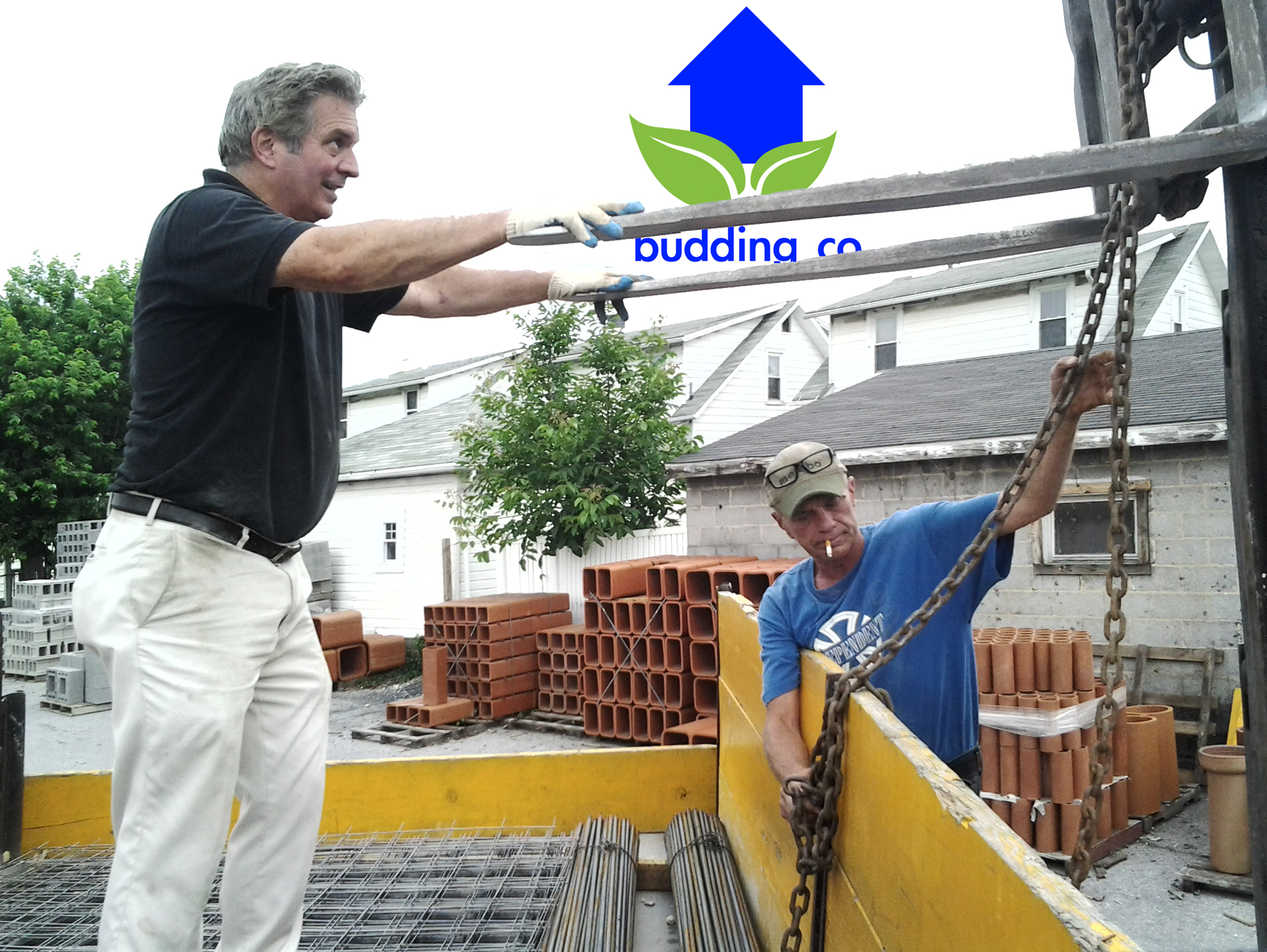 Budding overs a full line of steel products from wire mesh to lally columns. Above a few budding men are loading an order to go out on delivery.